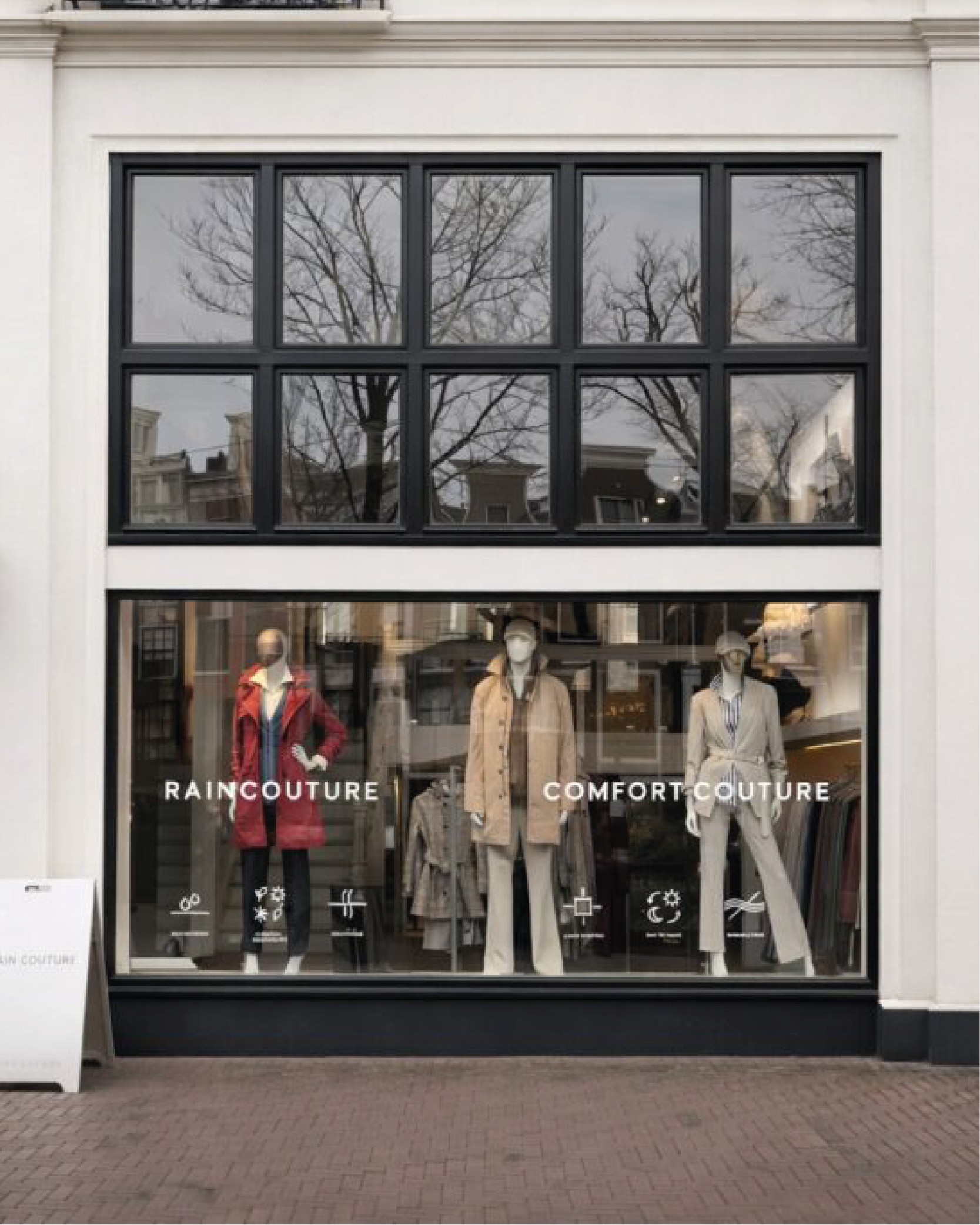 In een historisch pand aan de Spiegelgracht in Amsterdam ontwierpen we de flagshipstore voor Raincouture.De winkel vertaalt de essentie