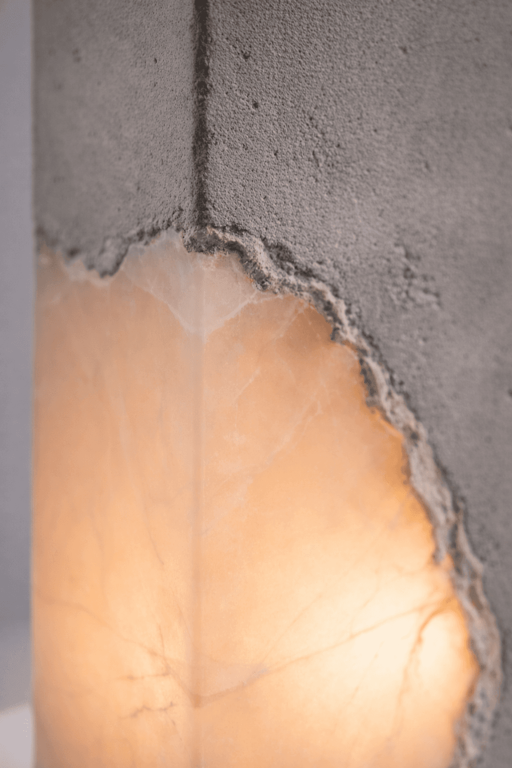 Het ruwe beton draagt de sporen van het leven.Het licht onthult