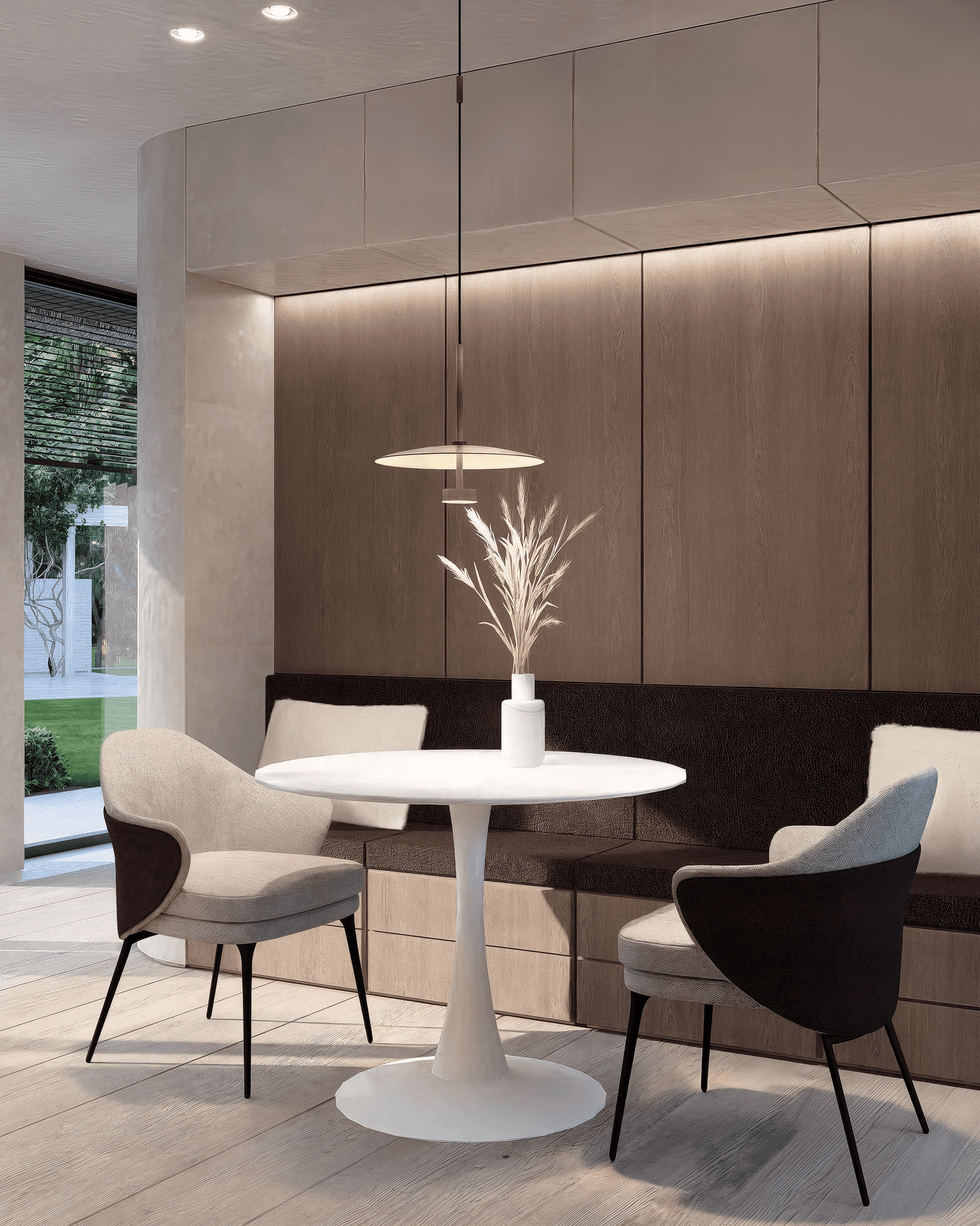 Ontwerp van een vrijstaande villa in een bosrijke omgeving, waarbij de relatie met de tuin centraal staat.De Y-vormige plattegrond opent het huis in meerdere richtingen en benut het uitzicht optimaal.
